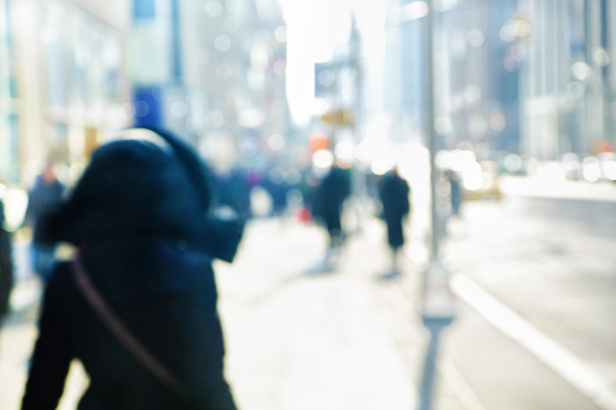 Sound: muted chatter. distant traffic.