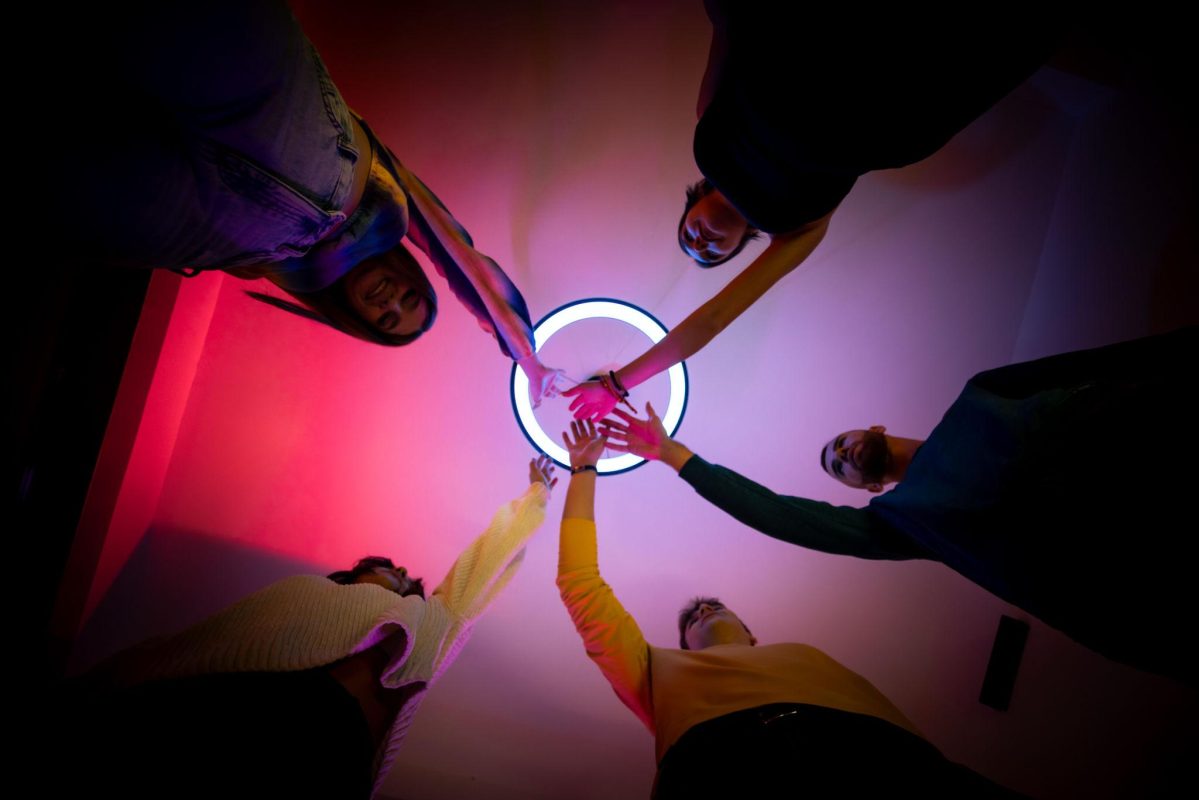 Small glows of light around people.
