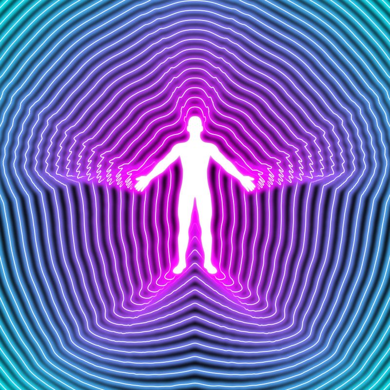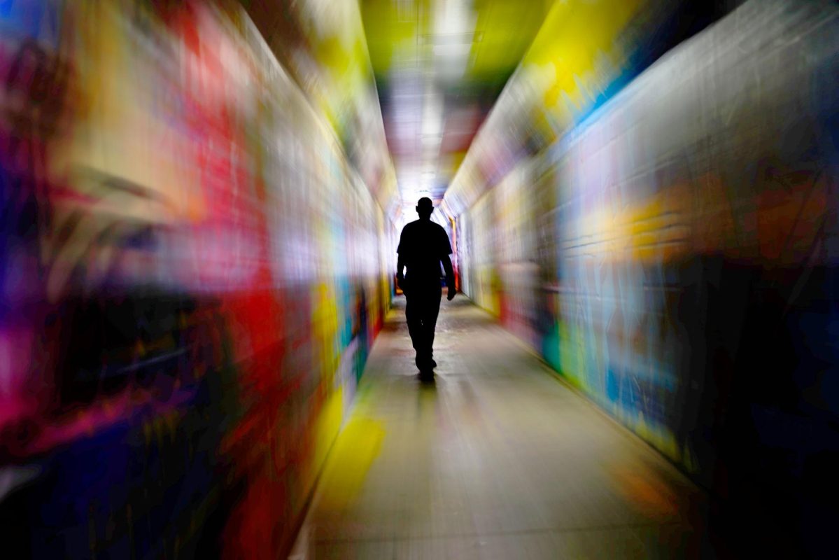 Silhouette walking into sunlight.